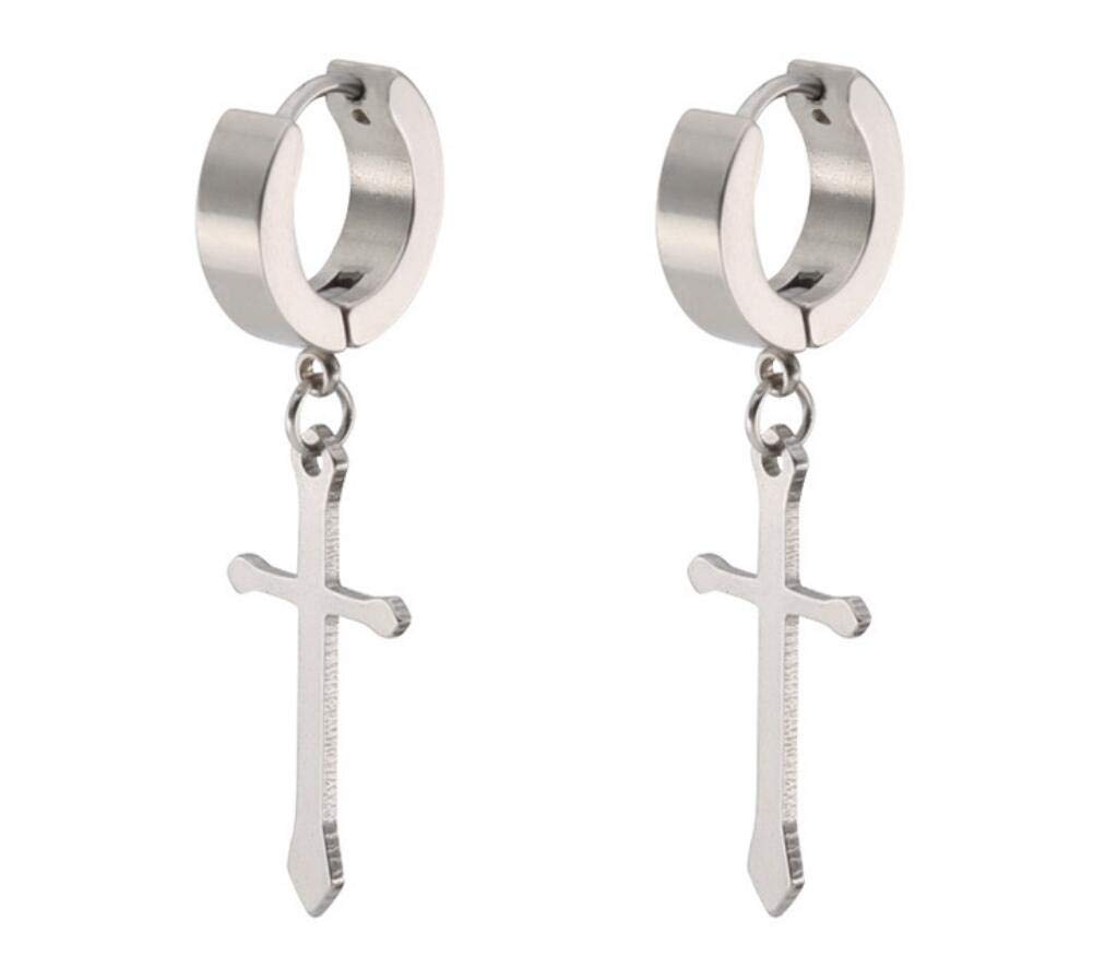 Men Women Girls Hoop Earrings Classic Titanium Stainless Steel Cross Pattern Cross Drop Dangle Hoops Earrings For Sensitive Ears Hoop Foretadrenaline Com